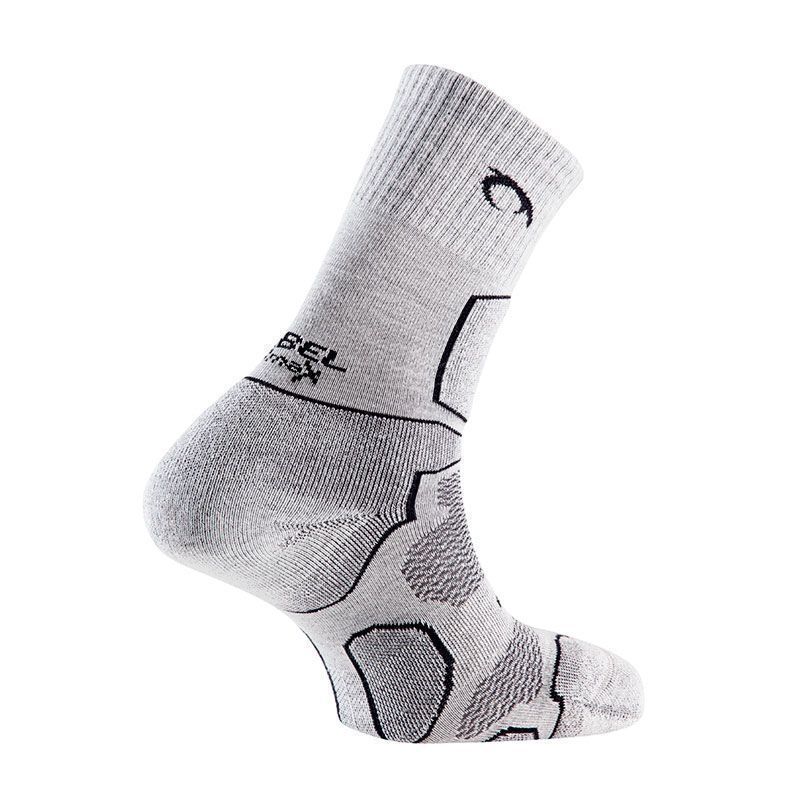 Los calcetines Lurbel Logan Five con altura H5, ideales para trekking y senderismo en la temporada otoño-invierno, ofrecen un ajuste sin opresión con medidas actualizadas y una franja de adaptabilidad en el empeine para evitar el deslizamiento. Su diseño sin costuras y refuerzo adicional en la caña garantizan comodidad y protección contra roces. Equipados con tecnología Bmax Tetra y estructura ESP 2 para combatir ampollas, sobrecalentamiento y humedad, mientras que la rejilla Silver Base Layer proporciona protección antibacteriana. Un modelo asimétrico con zonas de transpiración estratégicas para un rendimiento óptimo en condiciones exigentes.