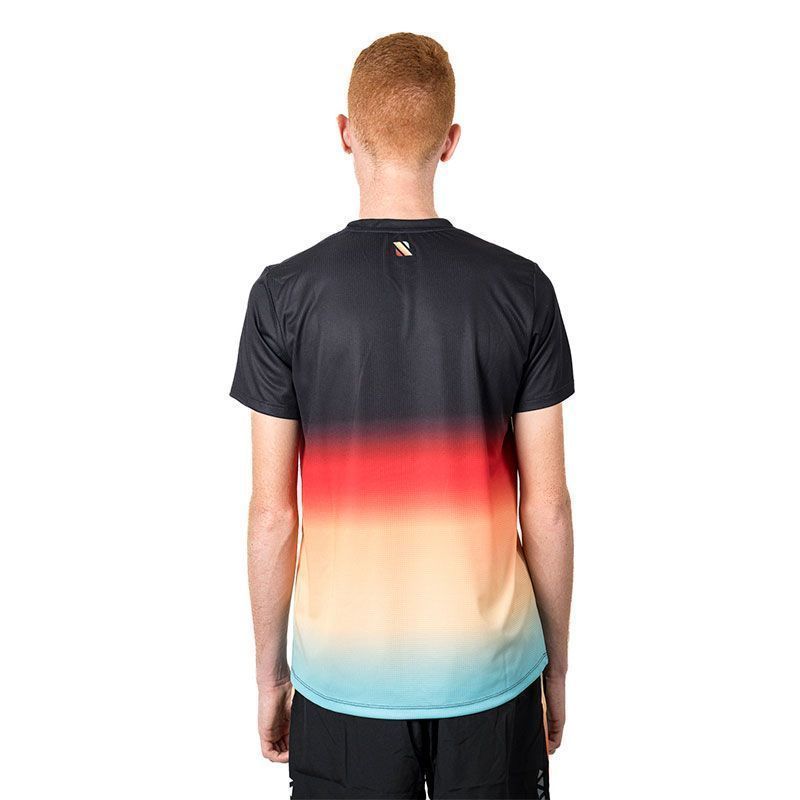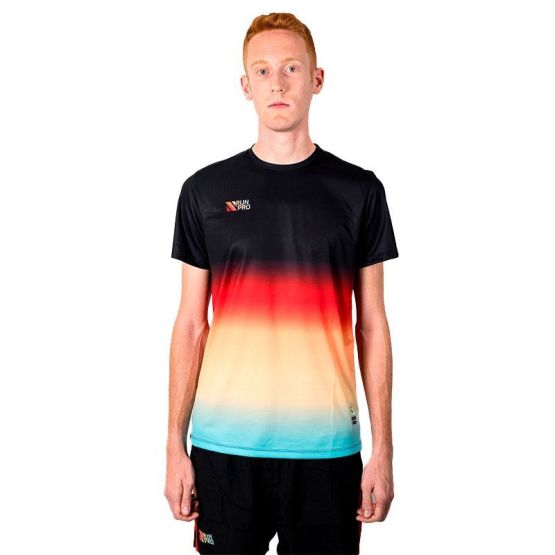 La camiseta de manga corta Black Sunset está fabricada por Run&Pro con un diseño llamativo de colores degradados y un tejido técnico que agradecerás el día de competición o en tus entrenos diarios.