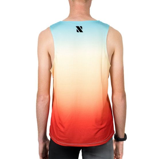 La camiseta de tirantes Sunset está fabricada por Run&Pro con un diseño llamativo de colores degradados y un tejido técnico que agradecerás el día de competición o en tus entrenos diarios.
