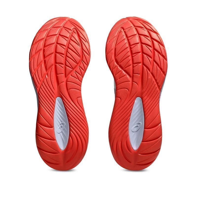 La parte superior está diseñada con un mesh técnico engineered, que asegura transpirabilidad, ligereza y un ajuste cómodo, permitiendo un flujo de aire óptimo durante las carreras. Incluye detalles como la lengüeta "Comfy", más ligera y acolchada para un mejor soporte, y un tirador elástico en el talón inspirado en la serie Nimbus, facilitando el calce y ajustando el talón a la perfección.