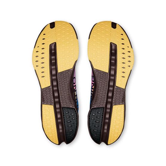 El rocker delantero, más marcado y ágil, potencia la propulsión natural de la pisada. En la suela, las almohadillas de goma estratégicamente colocadas aseguran agarre y durabilidad sobre asfalto.