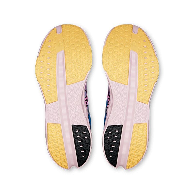 El rocker delantero, más marcado y ágil, potencia la propulsión natural de la pisada. En la suela, las almohadillas de goma estratégicamente colocadas aseguran agarre y durabilidad sobre asfalto.