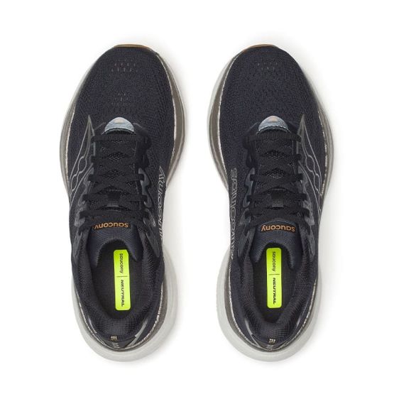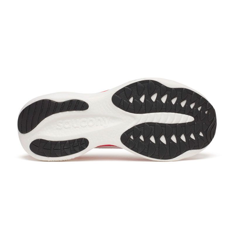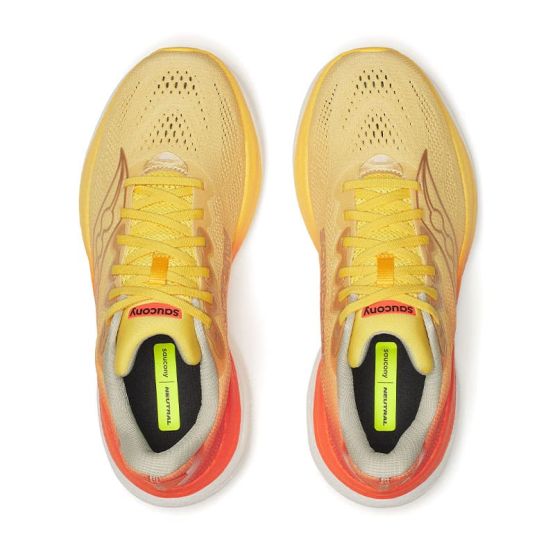 El upper incorpora un engineered mesh de nueva generación, más transpirable y elástico, que se adapta a diferentes tipos de pie con mayor naturalidad. El ajuste es cómodo y seguro, con un acolchado extra en el collar del talón que mejora la sensación de confort y sujeción, especialmente en rodajes largos.