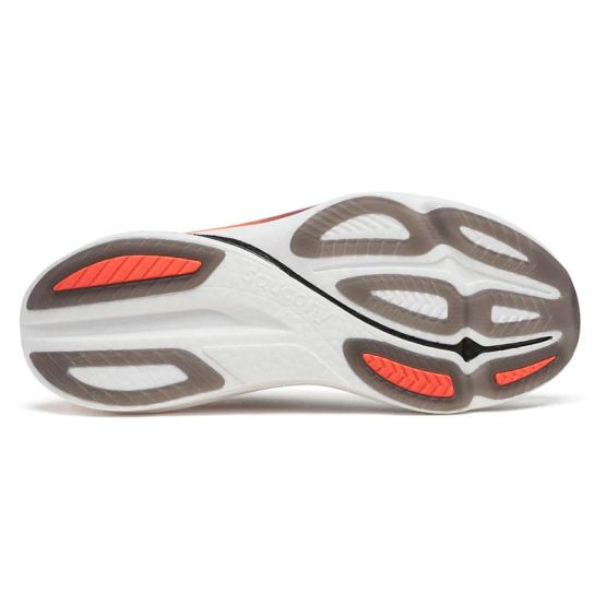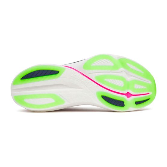 La mediasuela utiliza PWRRUN PB, una espuma supercrítica que combina una amortiguación suave para el uso diario con un rebote marcado cuando se incrementa el ritmo, logrando una eficiencia energética superior al 85 %. La plantilla SRS Sockliner añade un extra de confort y respuesta en el primer contacto con el suelo. En la suela exterior, el caucho XT-900 Carbon Rubber asegura durabilidad y tracción fiable en entrenamientos intensos sobre asfalto.