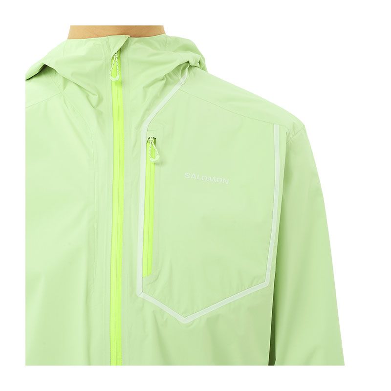 Chaqueta Salomon Bonatti Pro: chaqueta técnica de alto rendimiento con membrana Pertex® Shield 20k/20k. Diseñada para competiciones de ultra distancia, es totalmente impermeable, transpirable y ultraligera (aprox. 194g). Su sistema AeroPACK permite llevar la mochila debajo, garantizando que tu equipo se mantenga seco en las condiciones más duras