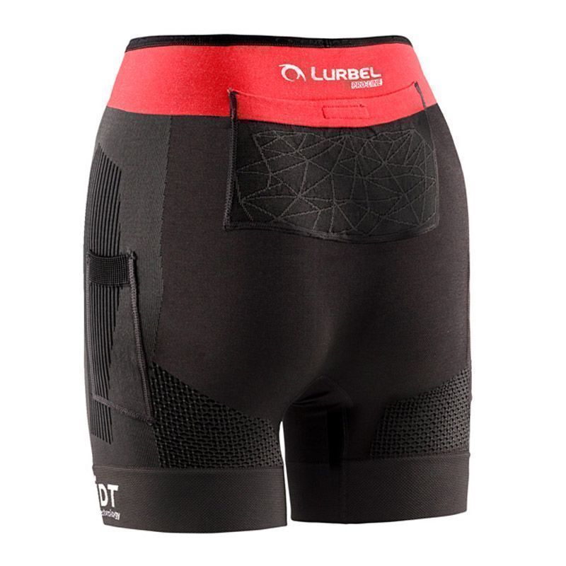 Cuenta con 3 bolsillos distribuidos de la siguiente forma: dos pequeños en el lateral del cuadríceps para poder acceder rápidamente a lo geles o barritas energéticas, y uno más grande en la zona lumbar, para el teléfono, llaves, u otros accesorios con cierre con velcro. Tejido 3D en diversas zonas para liberar presiones y mejorar la ventilación/transpiración.