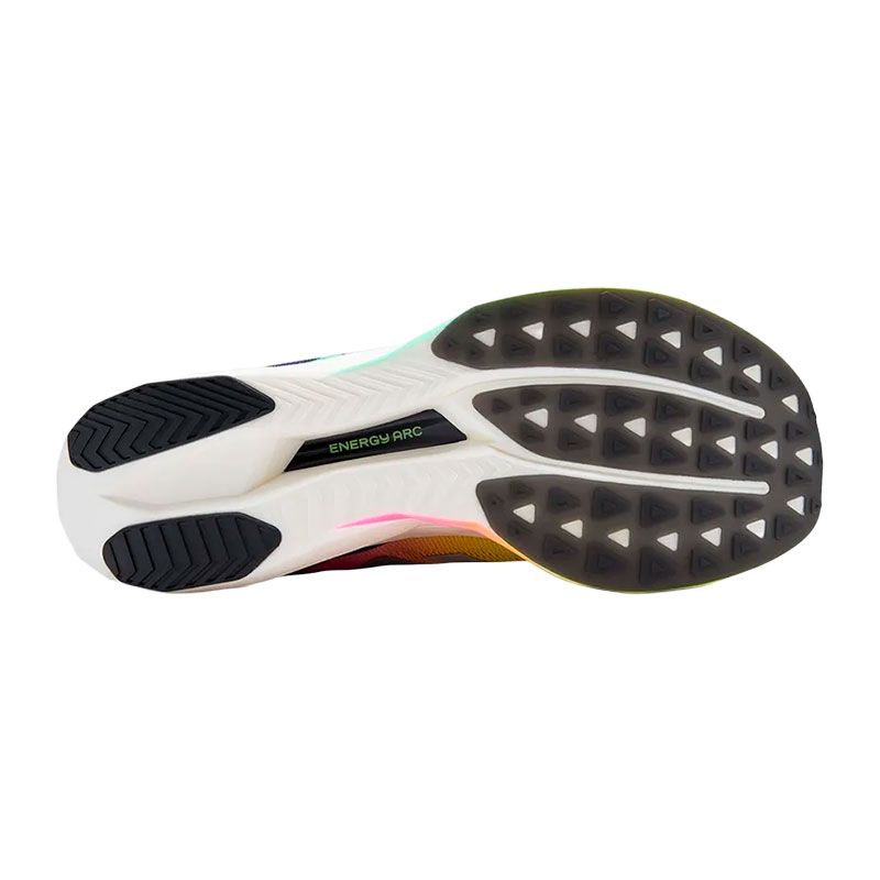 La mediasuela utiliza FuelCell 100% PEBA, con un diseño más aerodinámico y ranuras estratégicas que mejoran la respuesta. En su interior, la placa de carbono Energy Arc, ahora un 38% más rígida en el antepié, proporciona una pisada más reactiva, ayudando a impulsar cada zancada con más eficiencia.