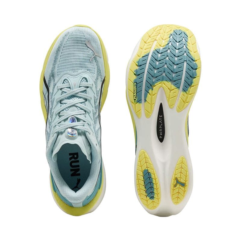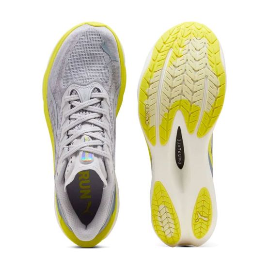 La mediasuela utiliza la nueva NITRO FOAM en doble capa con infusión de nitrógeno, ofreciendo una combinación equilibrada de ligereza, suavidad y retorno de energía. Entre ambas capas se integra la PWRPLATE de carbono, ahora más estable y menos rígida, que aporta una propulsión más natural y una transición más fluida en cada zancada.