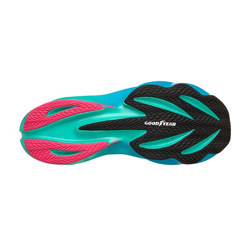 La tecnología HYPER ARC® aporta una geometría tipo rocker que suaviza la transición desde el aterrizaje hasta el despegue. La placa winglet con infusión de carbono añade estabilidad y un efecto propulsor notable. La suela exterior Goodyear® Performance garantiza tracción y durabilidad en asfalto.