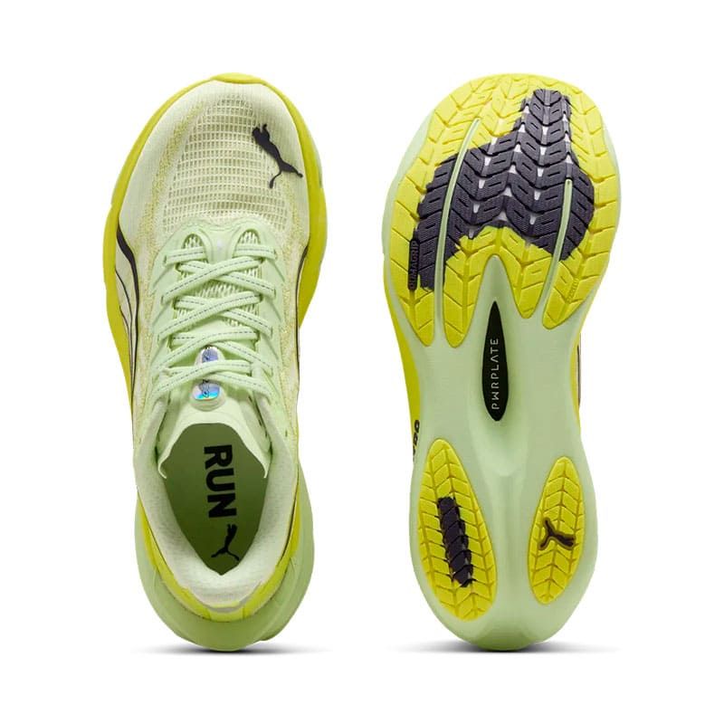 La mediasuela utiliza la nueva NITRO FOAM en doble capa con infusión de nitrógeno, ofreciendo una combinación equilibrada de ligereza, suavidad y retorno de energía. Entre ambas capas se integra la PWRPLATE de carbono, ahora más estable y menos rígida, que aporta una propulsión más natural y una transición más fluida en cada zancada.