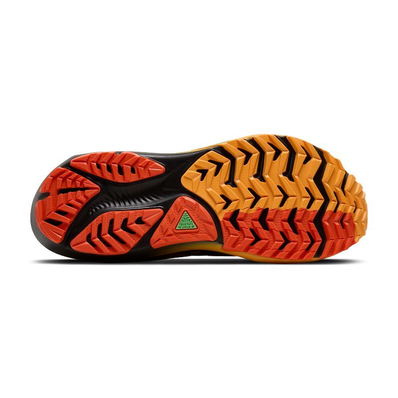 La suela exterior utiliza la tecnología TrailTack Green, un compuesto resistente a la abrasión con taqueado multidireccional que asegura agarre y tracción en terrenos variados, desde pistas compactas hasta senderos húmedos o irregulares.