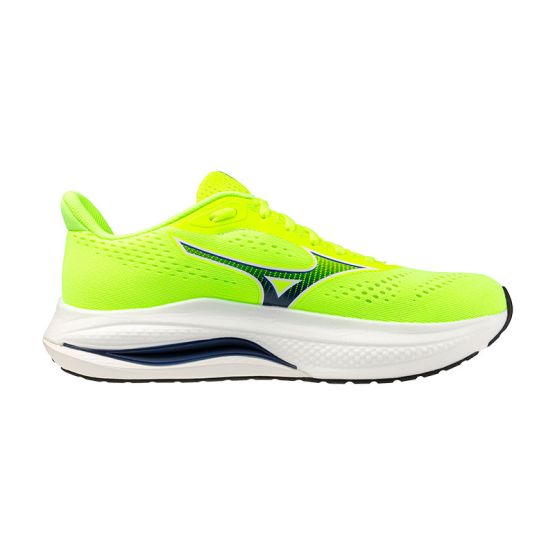 La placa MIZUNO WAVE, ahora asimétrica, ofrece un soporte medial progresivo que evita el colapso del arco y favorece transiciones más fluidas. La suela con goma X10 añade durabilidad y tracción en las zonas clave.