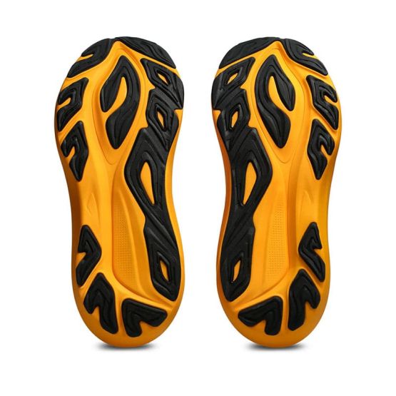La mediasuela combina amortiguación con reactividad, logrando una pisada más viva que en versiones anteriores. La suela adopta un diseño inspirado en la Asics Novablast 5, con ranuras de diferentes profundidades que aportan estabilidad adicional y flexibilidad, mejorando la transición de la pisada y el agarre sobre asfalto.