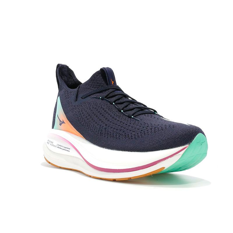 La mediasuela de las Mizuno Neo Vista 2 es uno de sus mayores aciertos. Compuesta por Mizuno Enerzy NXT en doble capa, combina una parte superior más suave que protege articulaciones y una inferior más firme que impulsa la pisada. El resultado es una sensación de amortiguación controlada y dinámica, perfecta para mantener ritmos altos sin castigar el cuerpo.