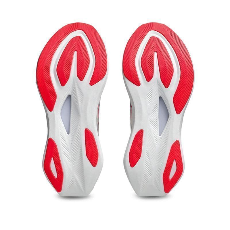 Aquí reside la gran innovación: la mediasuela combina FF BLAST™ MAX, un compuesto suave y elástico que asegura comodidad en rodajes largos, con FF TURBO²™, la espuma más reactiva de ASICS que aporta rebote y dinamismo. Entre ambas se integra el sistema ASTROPLATE™, una placa diseñada para mejorar la propulsión y favorecer transiciones más rápidas y eficientes.