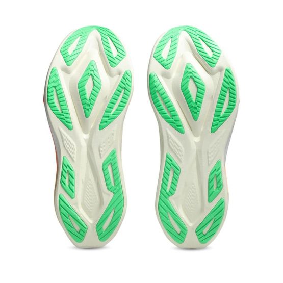 La gran revolución de este modelo reside en su mediasuela de doble compuesto y mayor altura. En la zona inferior, el conocido FF Blast+ asegura una pisada blanda y agradable. La gran novedad aparece en la capa superior con el compuesto Flyte Foam Leap, una tecnología de última generación que garantiza un despegue ágil, dinámico y muy reactivo. Para cerrar el conjunto, la suela utiliza un caucho altamente resistente a la abrasión, asegurando una larga vida útil a pesar de la alta intensidad de uso.