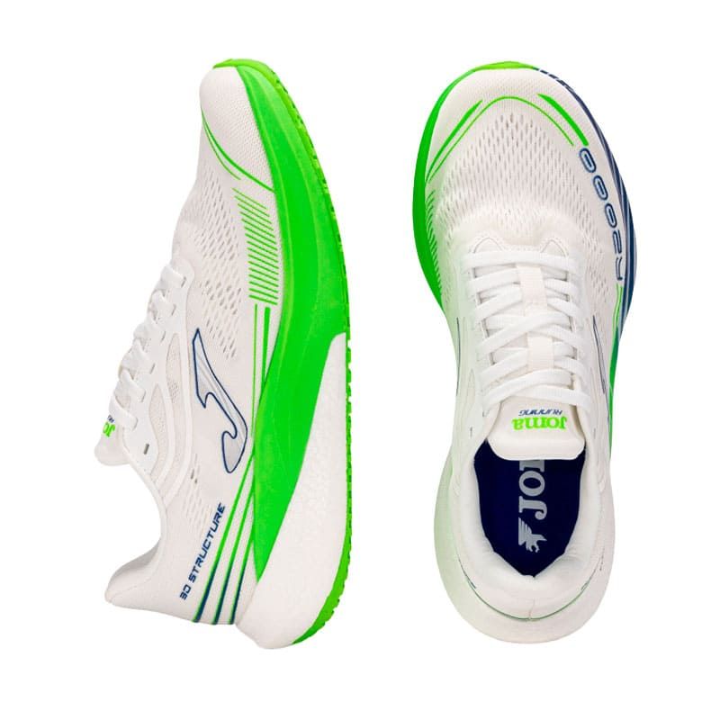 El corte superior está fabricado en textil transpirable con incorporación de pequeñas perforaciones elaboradas con la tecnología VTS, que favorecen la ventilación del sudor. Para dar firmeza, sujeción y ajuste al upper, se han añadido varios sistemas. Por un lado, el sintético JOMA SPORTECH sin costuras en la zona de la cordonera adapta las zapatillas al pie. Por otro lado, entre el forro y el material principal, hemos incluido una estructura de cintas de ajuste, que no influirá en la flexibilidad de las zapatillas. La lengüeta elástica y ultraligera está cosida al forro con el fin de evitar deslizamientos.