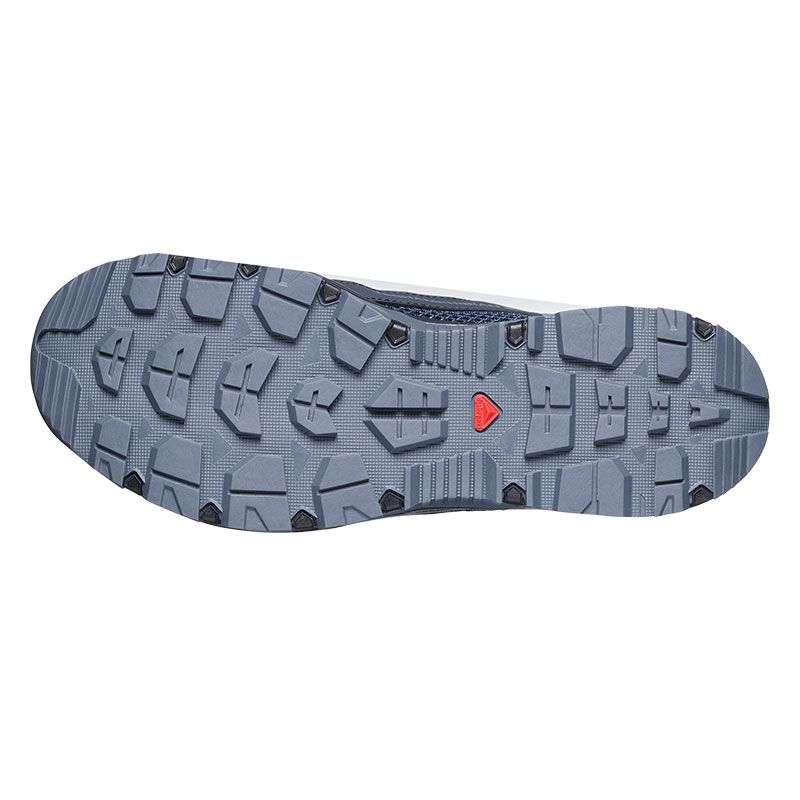 La parte superior está fabricada con materiales de secado rápido y una malla antipartículas que bloquea la entrada de piedras y suciedad. Para garantizar la seguridad del usuario, cuenta con una puntera reforzada y una construcción cosida que protege los dedos y el pie ante impactos contra rocas o raíces en terrenos técnicos.