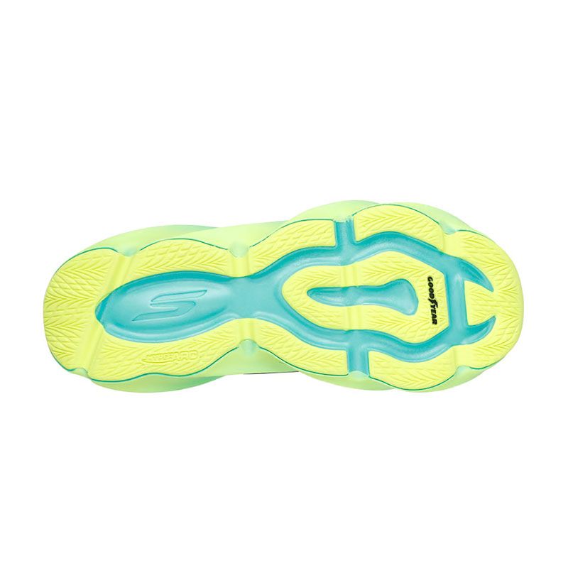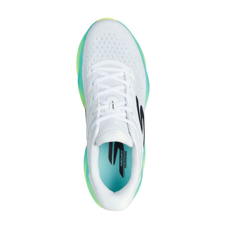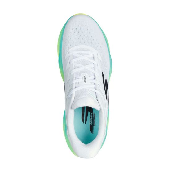 El diseño aerodinámico, junto con los logotipos Skechers Performance™, ofrece una estética moderna que transmite velocidad y tecnología.