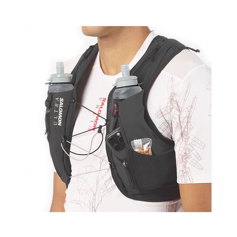 Este modelo tiene un volumen de 12 litros, pesa solo 130 g y está fabricado con tejidos elásticos y transpirables, ofreciendo un ajuste seguro y cómodo incluso en las carreras más exigentes. Además, incorpora detalles prácticos como un sistema de cierre Quick Link, compatibilidad con bidones blandos de 500 ml, y un diseño pensado para minimizar el rebote.
