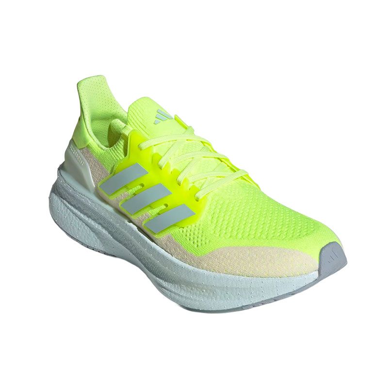 La parte superior de las Ultraboost 5 está confeccionada con tejido Primeknit, un material altamente flexible y transpirable que envuelve el pie como un calcetín, asegurando un ajuste adaptativo y cómodo. Este upper está diseñado en una sola pieza, con superposiciones sin costuras que mejoran la sujeción sin sacrificar la flexibilidad. La lengüeta unida al resto del upper y el refuerzo del talón moldeado proporcionan una mayor estabilidad y soporte, manteniendo el pie seguro durante toda la carrera.