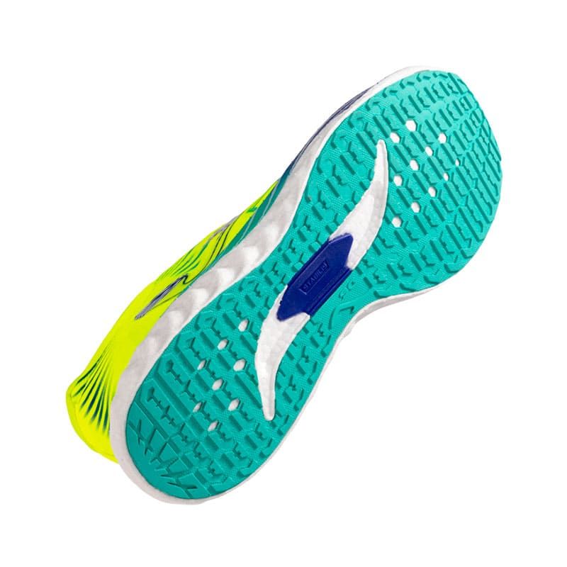 La mediasuela de perfil bajo incorpora la tecnología FLY REACTIVE, que proporciona una excelente combinación de ligereza y respuesta. Su drop de 6 mm favorece tanto a corredores que talonan como a aquellos con apoyo de medio pie, adaptándose a diversas técnicas de carrera. Además, el sistema STABILIS refuerza el medio pie, mejorando la estabilidad y reduciendo el riesgo de torsiones o lesiones. La suela de caucho DURABILITY ofrece una alta resistencia al desgaste, ideal para largas jornadas de competición en asfalto.