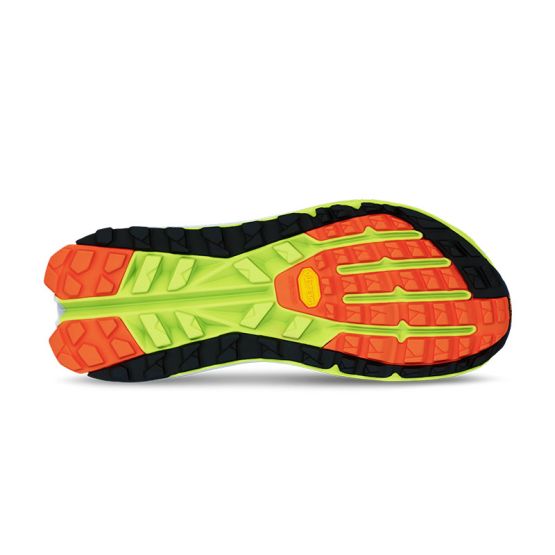 En cuanto a su suela exterior, se mantiene el mismo compuesto duradero (Vibram Megagrip), con pequeñas modificaciones de diseño que aumentan su resistencia sin comprometer la flexibilidad. Una suela que asegura tracción y durabilidad en terrenos variados, junto a una pisada estable y segura. La suela se divide en dos partes casi independientes para mejorar la adaptabilidad al terreno, minimizando el impacto de obstáculos como rocas o salientes.