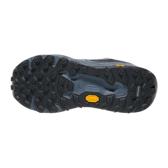 La suela Vibram® Megagrip con tacos de 4.5 mm está diseñada para un agarre superior en cualquier tipo de superficie, desde tierra suelta hasta roca mojada. Acompañada por una media suela Fresh Foam X de doble densidad, estas zapatillas ofrecen una pisada suave, amortiguada y estable. Su capa inferior firme proporciona estabilidad, mientras que la superior más suave asegura una transición fluida y mayor comodidad en largas distancias. Además, esta suela incorpora un 30% de caucho reciclado, destacando por su enfoque sostenible.